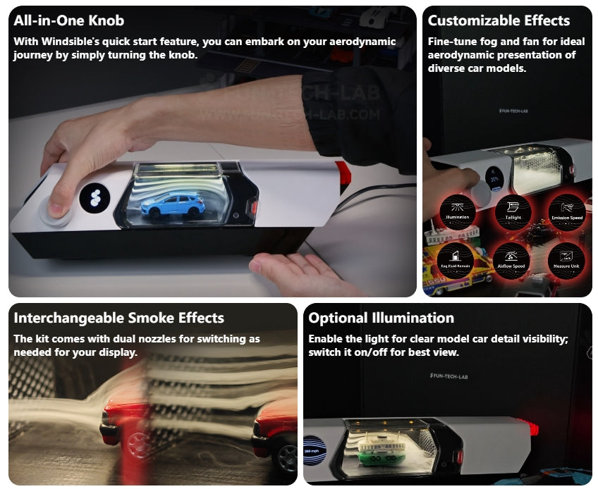 Model Car Friendly: Windsible uses a model car-friendly fog fluid, allowing you to showcase your diecast model cars without worrying about paint damag.